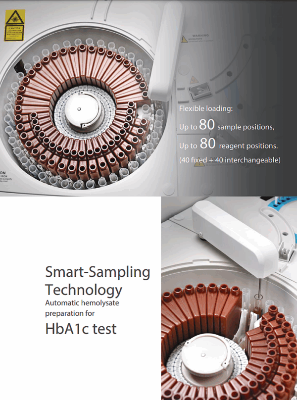 - Reagent/Sample Tray: 80 reagent positions, 40 sample positions (refrigerated)