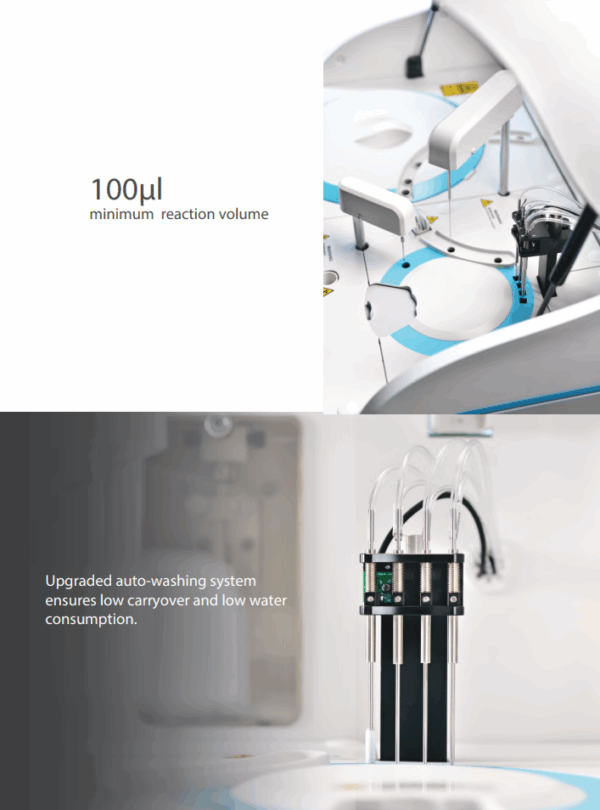 - Throughput: 200 tests/hour (photometric), up to 400 tests/hour with ISE